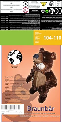 Ikumaal Costume da Orso Bruno, F67 taglia 4-5A (104-110cm) per bambini, orso, orsi, travestimento, costumi per ragazzi, ragazze, carnevale, costume in maschera, regalo