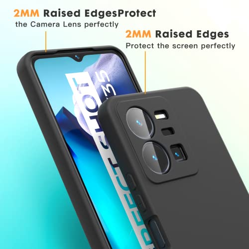 Ikziwreo Cover per Vivo Y35 4G + [2 Pack] Pellicola Protettiva in Vetro Temperato, Custodia Liquid Silicone TPU Cover Ultra-Sottile AntiGraffio Antiurto Case - Nero