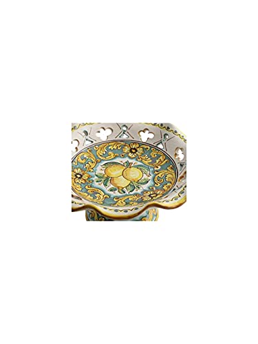 ILAB Centrotavola alzata media in ceramica decorata a mano da ceramisti siciliani di Santo Stefano di Camastra limoni art 4