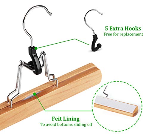 Ilauke 12 Grucce per Pantaloni, in Legno, Porta Pantaloni e Gonna con Gancio girevoli a 360°, Antiscivolo, Salva Spazio, con 5 ganci di ricambio per gonne jeans, pantaloni