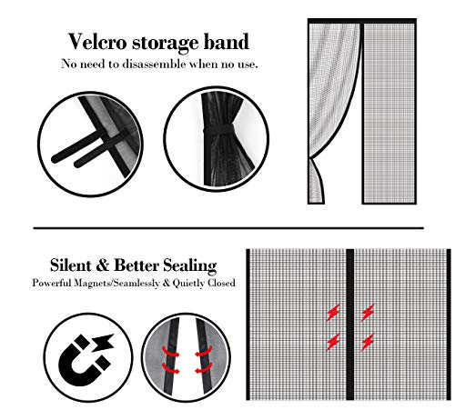 Ilauke Zanzariera Magnetica 120 x 220CM, Zanzariere Magnetiche per porte, Tenda Totalmente Magnetica, Chiusura Automatica Impedendo agli Insetti di entrare-Non Accorciabile (Nero)