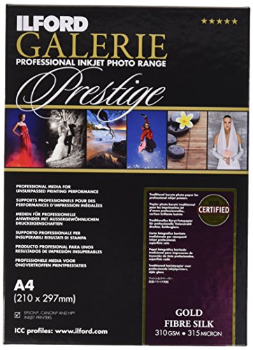 Ilford Galerie Prestige Gold Fibre Silk - Carta fotografica per stampanti a getto d'inchiostro, formato A4, 25 fogli, 310 g/mq