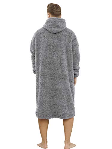 Ililmmoe Coperta oversize Sherpa indossabile con cappuccio per donne e uomini lunga e confortevole coperta sherpa Shaggy Pullover peluche calda coperta accogliente taglia-Grigio
