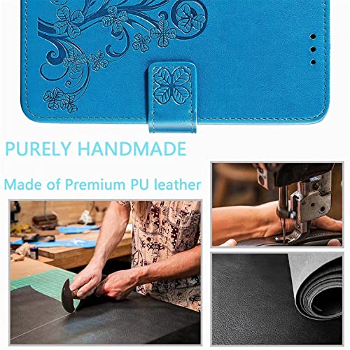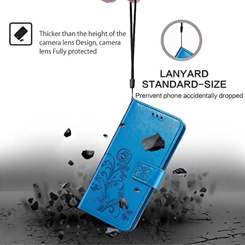 ILING Cover per Motorola Moto E20/Motorola E40/Motorola E30, Ultrasottile Serie Lucky Clover Custodia in PU Pelle Premium Portafoglio Slot per Schede Chiusura Magnetica Flip Caso(Blu)