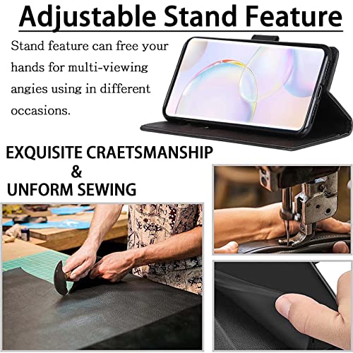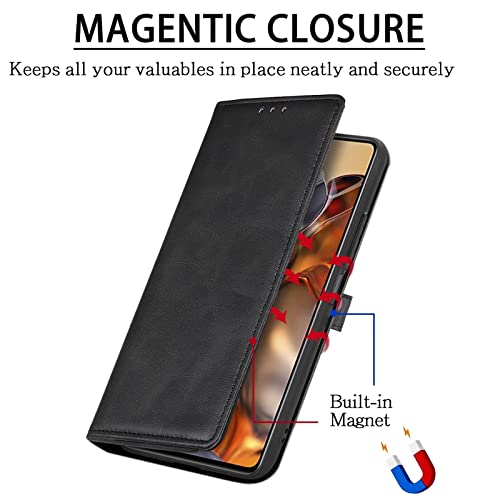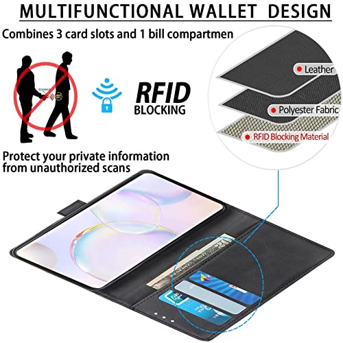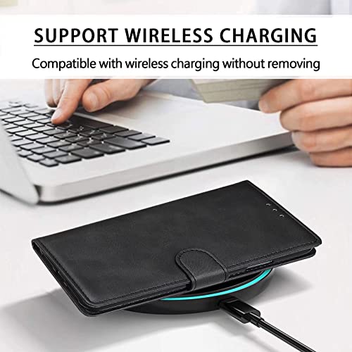 ILING Leather Folio Cover per Wiko Y52, Custodia in Classico Pelle Magnetico Premium PU/TPU Couro FILP Case con Supporto/Porta Carte a Portafoglio (Nero)