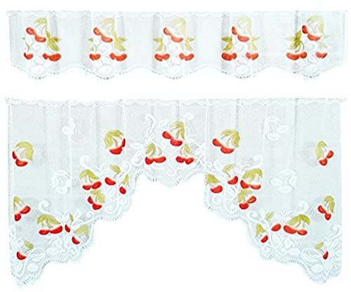 Ilkadim - Tende da cucina, 2 pezzi, dimensioni: 35 x 150 cm (esterno), 65 x 150 cm, colore: Bianco Weiß Rot Kirschen