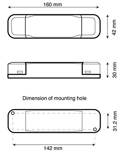INSTALLAZIONE: grado di protezione IP20, dimensione 160 x 42 x 30 mm (lunghezza × larghezza × altezza), temperatura ambiente (ta) -25 - +45 °C, temperatura di funzionamento (tc) 80 °C.
