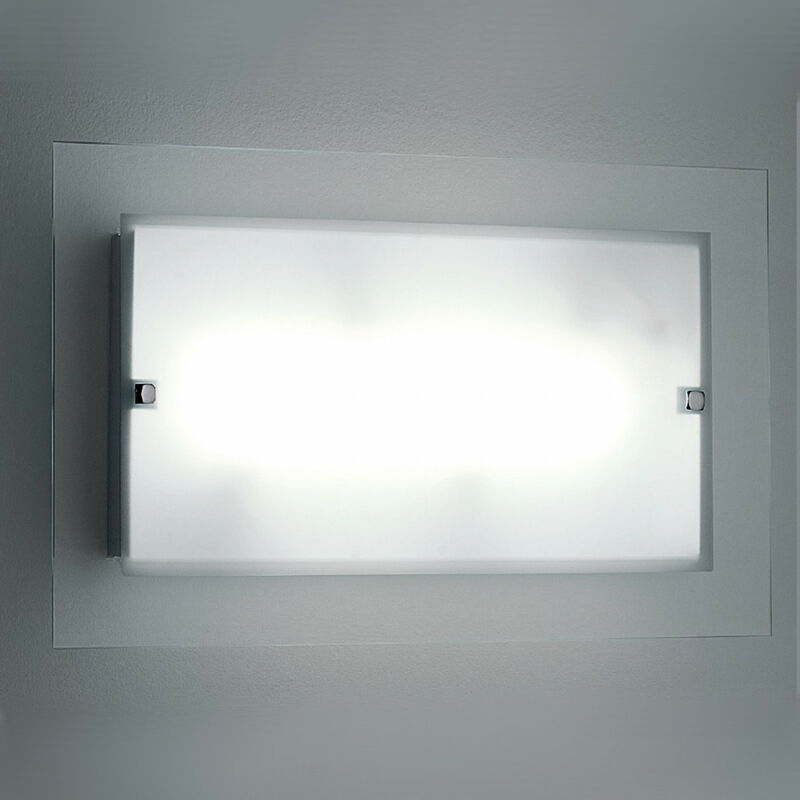 Plafoniera da soffitto o da parete dalla forma geometrica e scontata, un modello funzionale e pratico nella sua collocazione. Un' illuminazione a luce diffusa e ad alta resa in tutto l'ambiente. Plafoniera-applique PL FLAT RE P rettangolare Illuminando Lampada soffitto-parete moderna in vetro attacco E27 LED Vetro rettangolare in lastra 4 mm satinato bianco e bordo trasparente. E' provvisto di laterali che coprono le lampadine e quindi può essere preso in considerazione anche per vani scale. Struttura in metallo bianco. Lampade meravigliosamente semplice ed elegante, una forma rettangolare che si integra facilmente nell'ambiente in cui si trovano creando atmosfere incantevoli ed accoglienti. Una luce diffusa adatta sia per soffitti che per pareti di ogni stanza della casa. Ha una tensione a 220/240V (quindi non necessita di driver) ed un grado di protezione IP20 adatto ad ambienti interni con assenza di umidità. La l ampada da soffitto o parete è provvista di quattro portalampade