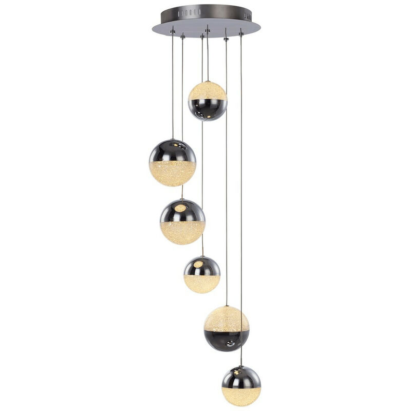Illuminati Eclipse Lampada a sospensione a 6 LED Lampada a sospensione rotonda a LED cromata dimmerabile | Finitura: cromo | Altezza: 150cm | Diametro: 33 cm