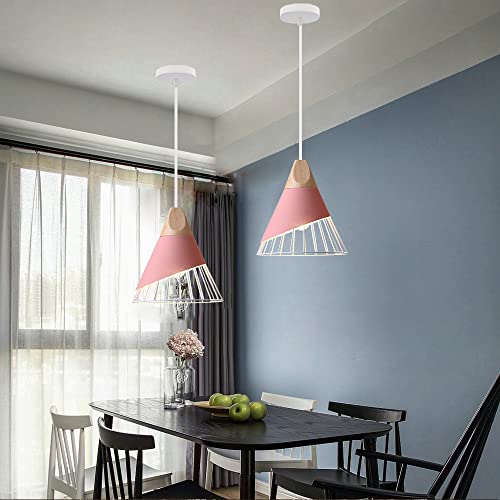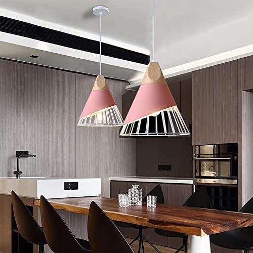 Illuminazione Lampada a sospensione In legno Luci Nordic moderno Creativo Lampadario in ferro Forma di cono E27 Semplice gabbia Lampada da soffitto Per camera da letto sale da pranzo cucina (Rosa)