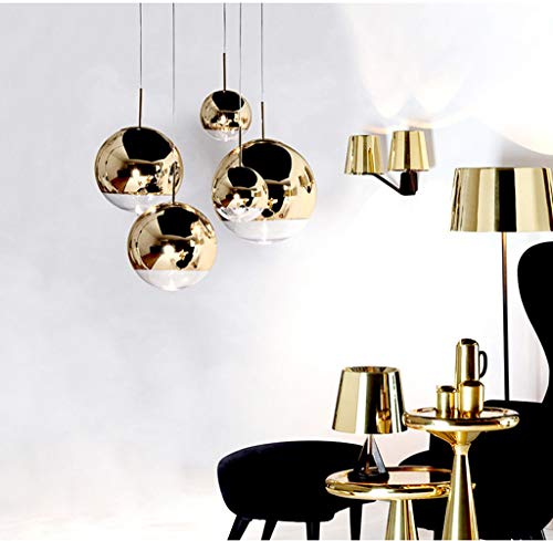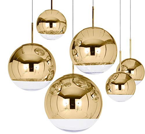 Illuminazione a Sospensione Sferico Trasparente - Lampada Single Moderni Soggiorno Bicchiere Casa Bar Camere da Letto Appeso al Soffitto(Lampadina non Inclusa) Oro 20CM
