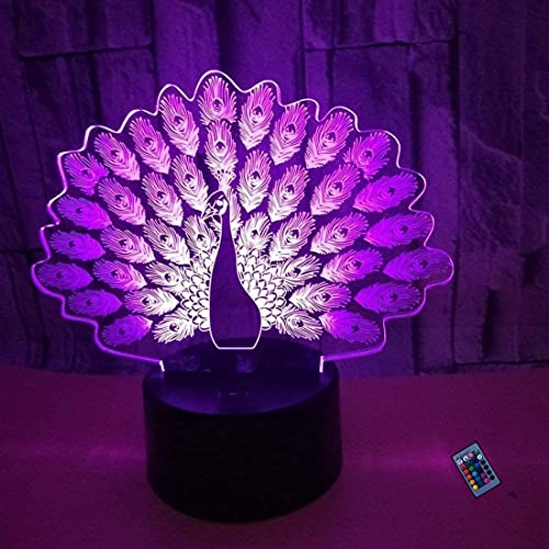 Illusione Ottica 3D Pavone Luce Notturna 16 Colori Mutevoli Telecomando USB Potere Toccare Cambiare Arredamento Lampada LED Lampada da Tavolo Bambini Brithday Natale Regalo
