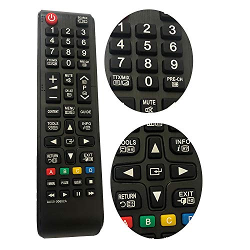 PERFETTO L'UTILIZZO : Funzione e aspetto, dimensioni dei pulsanti, ecc. Leggero, proprio come il tuo vecchio telecomando. il telecomando di ricambio per la TV Samsung AA59-00602A utilizza materiale ABS che non è facile da danneggiare, e il design ergonomico e il design leggero lo rendono super confortevole. È molto adatto a tutti, soprattutto ai bambini e agli anziani.