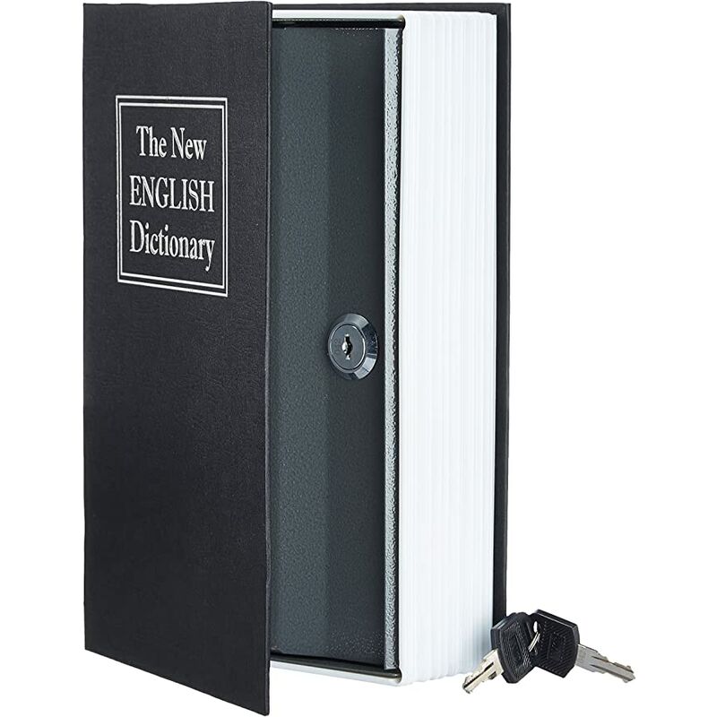 Cassaforte portatile che sembra un libro, ideale per nascondere piccoli oggetti di valore su uno scaffale. Il tessuto della copertina e del retro sono progettati per sembrare un libro. Non contiene pagine. Si consiglia di riporlo tra 2 libri su uno scaffale. Il coperchio si solleva per rivelare il coperchio della cassaforte. Sistema di chiusura a chiave progettato per prevenire i furti. 2 chiavi incluse. Spazio portaoggetti per nascondere denaro, carte di credito, documenti importanti, gioielli, ecc. Ideale per viaggiare oa casa. Numero di invia: 1 pz
