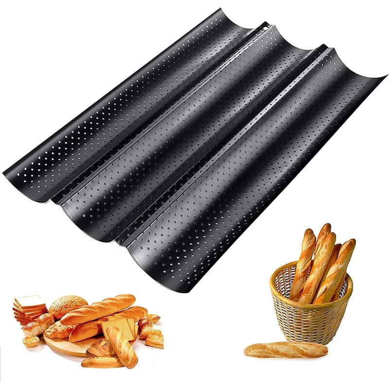 Materiale: realizzata in acciaio al carbonio di alta qualità, la teglia ha un rivestimento antiaderente per un facile rilascio. Padella multi-fessura: con questa teglia, puoi cuocere facilmente le baguette e risparmiare tempo cuocendo 3 pagnotte contemporaneamente. Facile da pulire: Va in lavastoviglie. Tuttavia, per una maggiore durata, ti consigliamo di pulire con un panno umido e una piccola quantità di detersivo, soprattutto se lo usi regolarmente. Il piano cottura è sicuro per gli alimenti, quindi può essere utilizzato senza carta pergamena . Eccellente conducibilità termica per buoni risultati di cottura - resistente al calore fino a 230°C Prova a fare la tua baguette! Con questo speciale vassoio per baguette fornito da te, puoi preparare bellissime specialità di baguette. 38*24,5*2,4 cm