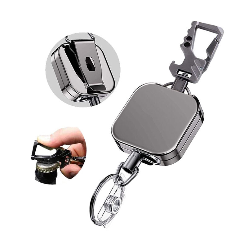 Diametro: 4 cm Lunghezza retrattile: 68 cm Peso individuale: 60g Misura portachiavi con fibbia da arrampicata: 8 cm*2,5 cm Peso singolo set: 105 g Materiale: Lega di zinco Imballaggio: Singolo in sacchetto OPP