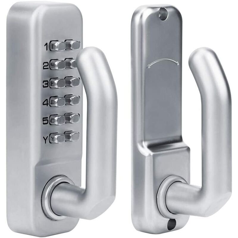 Serratura meccanica della porta - Serratura con codice meccanico, è possibile impostare una password da 1 a 11 cifre, è possibile accedere senza chiave, facile da usare. Con buone prestazioni antifurto, è adatto per casa, ufficio, parcheggio e cancelli di appartamenti. 【MATERIALE DI ALTA QUALITÀ】 Realizzato in lega di zinco ad alta durezza, antiruggine, buona durata e affidabilità. Design robusto del bullone di montaggio, facile installazione, nessun rumore, per un'esperienza silenziosa. 【Ampia applicazione】Impermeabile, completamente meccanico, nessuna batteria o alimentazione cablata richiesta, adatto per uso interno ed esterno. esterno. Perfetto per porte di uffici, porte interne, porte a noleggio, porte composite o in qualsiasi altro luogo le chiavi non si adattano! 【COSA RICEVERAI】 Include 2 pannelli di chiusura della porta, 2 cuscinetti in gomma, 1 x bullone, 4 viti, 3 prigionieri, 1 perno di articolazione con molla, 1 borsa per piastra paramotore (2 pezzi), 1 manuale in inglese