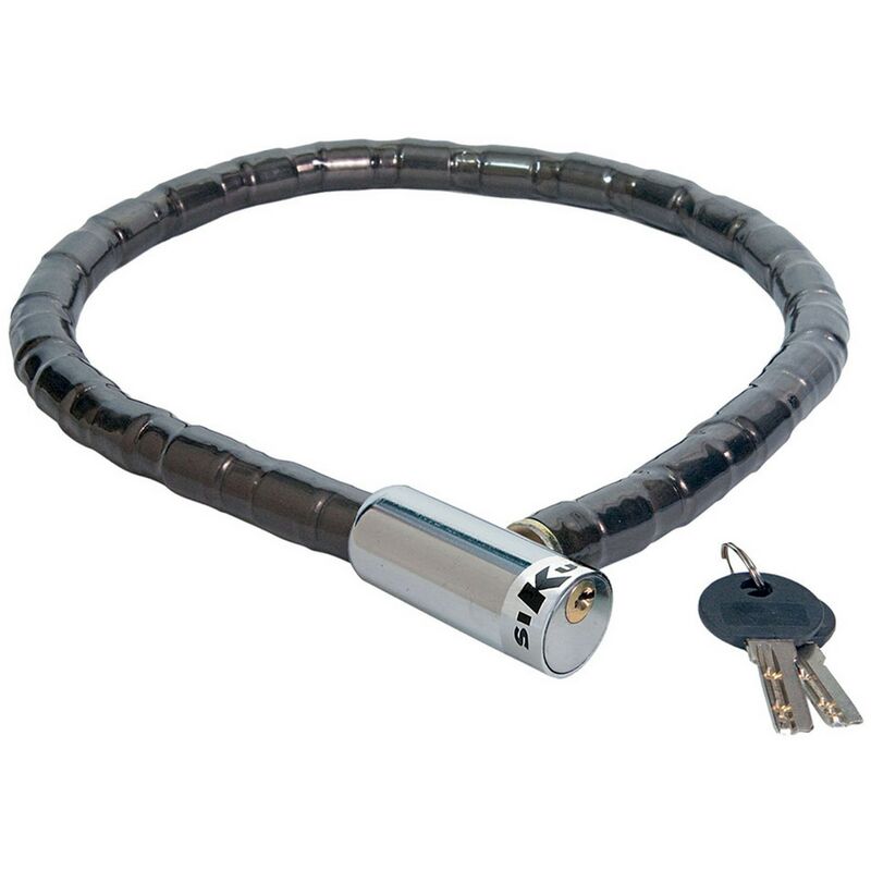 CON DUE CHIAVI. A CAVO BLINDATO, RICOPERTO CON GUAINA PLASTICA. TESTA LUCCHETTO IN ACCIAIO, CHIUSURA AUTOMATICA. ADATTO PER BICI E SCOOTER.CM 150 - ø MM 25