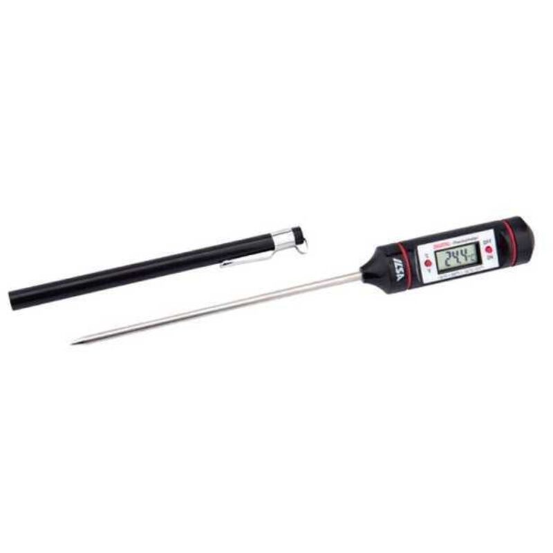Termometro digitale con sonda cm 12,0 Abs e acciaio inox 18/10 Gradi da -50^/+300^ Custodia protettiva Alimentazione 1 pila 1,5V inclusa