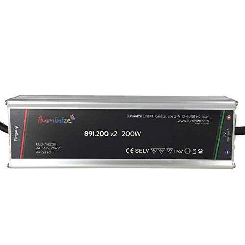 Iluminize LED di alimentazione adattatore: alluminio & a LED ad alta potenza di alimentazione 12 V, IP67, brummfrei, laststabil, cavo di connessione 35 cm senza spina, Argento 200.00W, 12.00V
