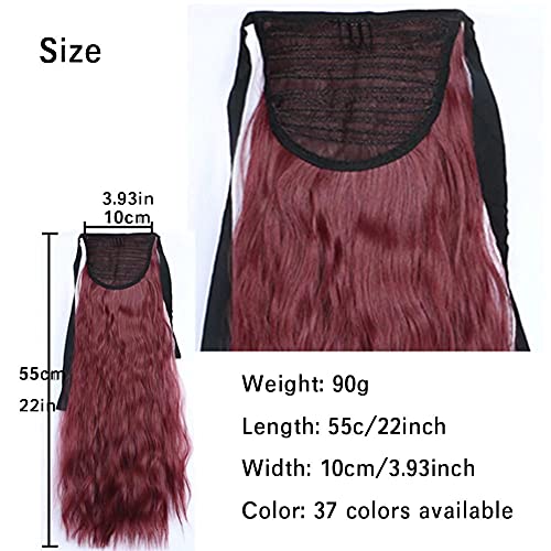 ILUU 55 cm Lungo Corn Wave Wrap Around Coda di Cavallo Estensione Dei Capelli 90g Parrucca Sintetica Parrucchino # 119 Rame Rosso Arancio Coda di Cavallo Posticci