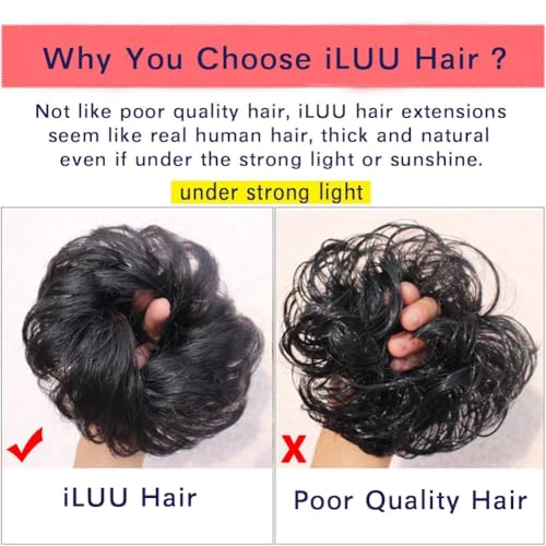 ★ CAMBIA IL TUO LOOK IN POCHI SECONDI: la crocchia per capelli iLUU è progettata con un elastico per capelli, ti offre un aspetto elegante e decente in un solo secondo. Extension per capelli sintetici ondulati disordinati, perfette per aggiungere volume e pienezza a uno chignon o una coda di cavallo, molto comode e facili da usare, eleganti e belle. Un elastico per capelli rende le taglie regolabili.