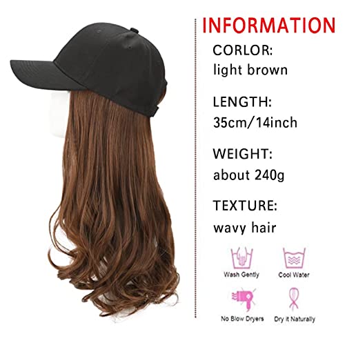 ILUU Extension Capelli Sintetici Attaccati Berretto da Baseball Parrucca Lunga Onda Riccia Cappello con Capelli - 14" Estensioni Capelli Castano Chiaro Cappello Parrucca Nera per Donne