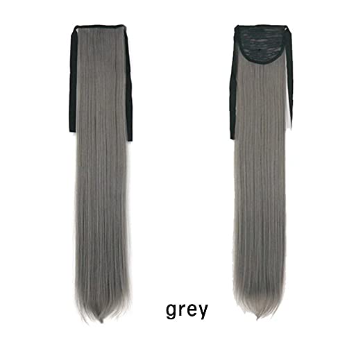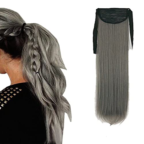 ILUU Grigio Moda Donna Coda di Cavallo 60 cm Lungo Rettilineo Legato Estensioni Dei Capelli Parrucchino Parrucca 90g Fermacravatta in Sintetico Coda di Cavallo Parrucchino con Lacci