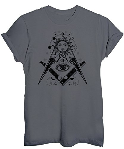 IMage T-Shirt Massoneria Illuminati Simboli - Famosi - Donna-S Grigio Scuro