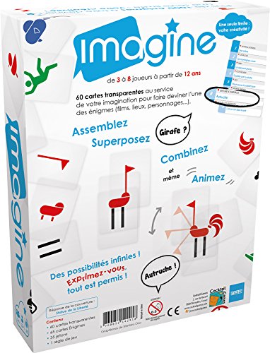GIOCO D'IMAGINAZIONE: 60 carte trasparenti sono al servizio della tua creatività per far indovinare agli altri giocatori film, luoghi, oggetti, personaggi... Sovrapponi, assembla e persino animate le carte!