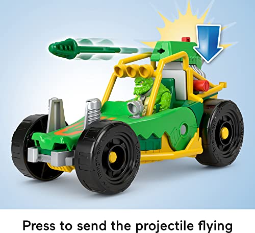 Imaginext DC Super Friends - Auto di Killer Croc con lanciamissili, set include 1 personaggio snodato, 1 auto a spinta e 1 missile, giocattolo per bambini, 3+ anni, HML05