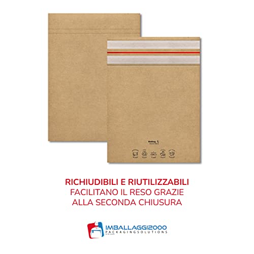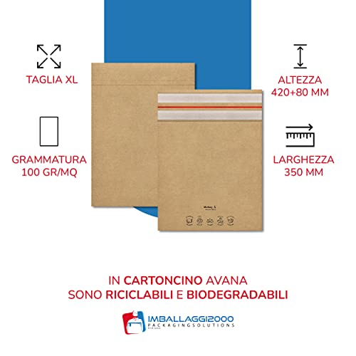 IMBALLAGGI 2000 - Buste per Spedizioni e Corrieri 10 Pezzi 350x420+80 mm Taglia XL in Cartoncino Ecologico Capienti e Resistenti, Buste Postali Ufficio e Documenti + Doppia Chiusura e Facile Apertura