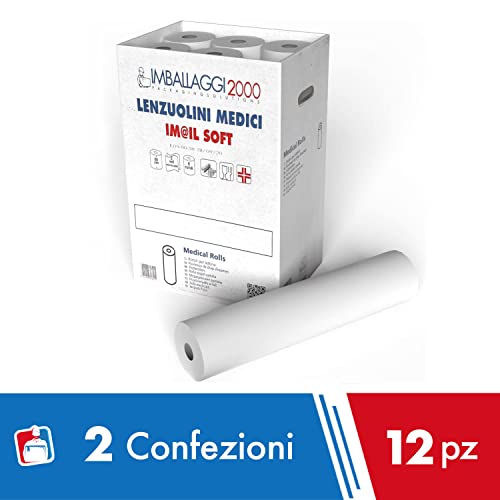 IMBALLAGGI 2000 - Rotolo Carta Lettino Massaggio, 2x6 Pezzi in Cellulosa Tot 12, Rotoli Carta Lettino Estetista e Terapie Morbidi e Assorbenti, Lenzuolino Medico per Lettino Igienico Monouso, 0.6x75 M