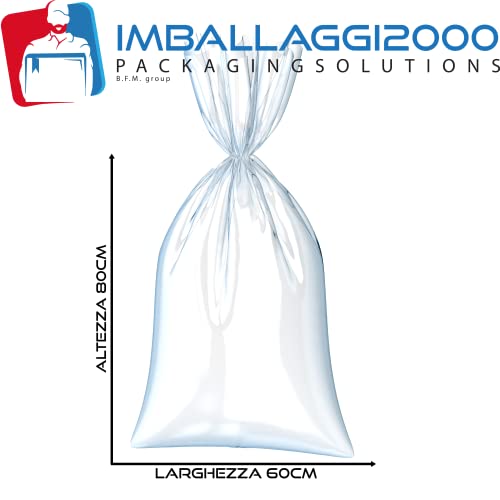 IMBALLAGGI 2000 - Sacchetti Trasparenti Adatti per Alimenti 60x80 Confezione Da 10 Kg, Sacco in Polietilene PLT