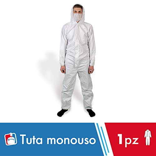 IMBALLAGGI 2000, Tuta da Lavoro Protettiva Monouso in TNT, Taglia M, 1 Tuta di Protezione, Tuta di Sicurezza Traspirante e Idrorepellente con Cappuccio, Chiusura Lampo e Elastico a Polsi e Caviglie