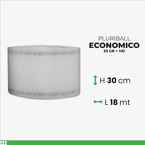 ImballaggiPer Rotolo Pluriball 0,3 x 18 mt 35gr/mq con HD, Bobina per Imballaggio e Spedizione, Ideale per Trasloco, Trasporto e Protezione Oggetti