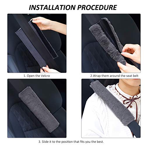 Facile da installare: spallina grigia per cintura di sicurezza in morbida pelliccia sintetica di coniglio con un pezzo di velcro resistente, è molto facile da installare, non sono necessari strumenti. Basta aprire, piegare la cintura di sicurezza e poi chiudere.