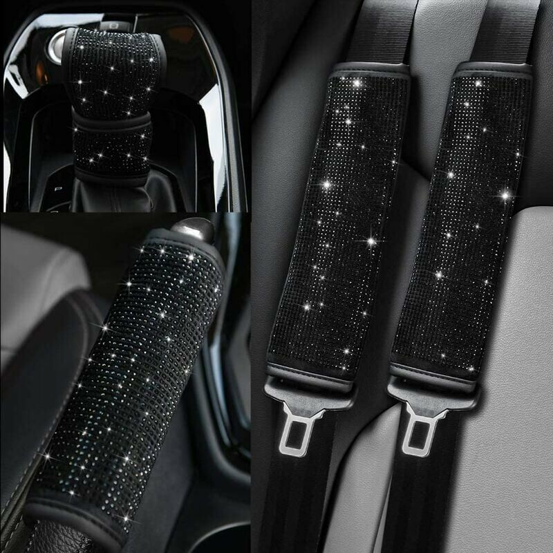 Il materiale morbido non sbiadisce - : questo set di spalline per imbracatura è realizzato in morbido velluto di alta qualità e strass Bling Bling. 4 pezzi/set, riceverai 1 copri freno a mano, 2 copri cintura di sicurezza e 1 copri cambio, per soddisfare le tue diverse esigenze di decorazione dell'auto. Il set di copertura della cintura di sicurezza brilla sotto le luci, brilla attraverso il parabrezza e illumina la tua auto. Un ottimo modo per aggiornare gli interni della tua auto. Regalo perfetto per donne e ragazze 【Esperienza di guida confortevole】: questo set di copricintura con strass è appositamente progettato per donne e bambini adulti per fornire una migliore ammortizzazione e proteggere le spalle dei membri della famiglia durante una frenata di emergenza o un incidente < /p> 【Universale e versatile】- La protezione universale per cintura di sicurezza è progettata per adattarsi alla maggior parte dei tipi di cinture di sicurezza e può anche essere inserita nello zaino, nel