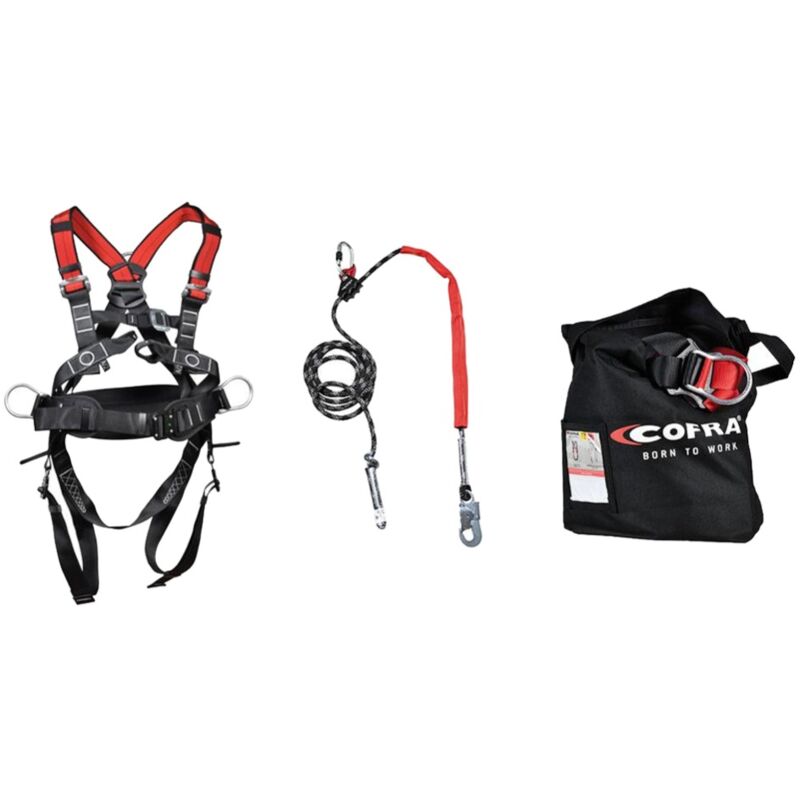 Il Kit Imbracatura anticaduta Cofra Evenstad è uno dei dispositivi di protezione individuale professionale, della linea Fall Protection, contro le cadute dall'alto, per proteggere il lavoratore arrestando la caduta libera dall'alto, soprattutto dai tetti. Nel Kit è compresa l'imbracatura Sragen Fast ultraresistente, dotata di sistemi tecnologici e dispositivi collaudati e certificati, che assicurano performance eccellenti in utilizzi di estremo pericolo;
