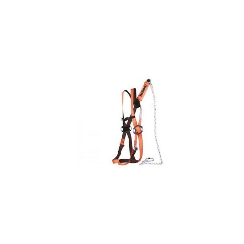 IMBRACATURA KIT ANTICADUTA ELARA 16 ANTINFORTUNISTICA CANTIERE DELTAPLUS Pronto all'uso, imbracatura 1 punto di ancoraggio anticaduta (dorsale), 2 fibbie di regolazione anticorrosione, 2 placche laterali di regolazione, con anticaduta assorbitore di energia non staccabile in corda trefolata Ø mm. 12, lunghezza mt. 2, moschettone in acciaio zincato. Fornito in borsa custodia.
