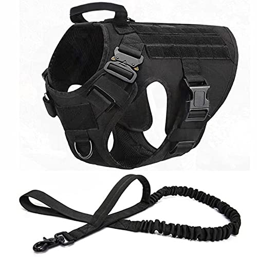 Imbracatura tattica militare per cani Pet Dog Vest Guinzaglio per cani con maniglia per cani di grossa taglia-cinturini e guinzaglio neri,XL