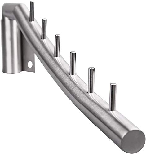 Imeea, gancio mobile appendiabiti da parete, con 6 ganci, 32 cm, in acciaio inox spazzolato SUS304 1-Piece Silver