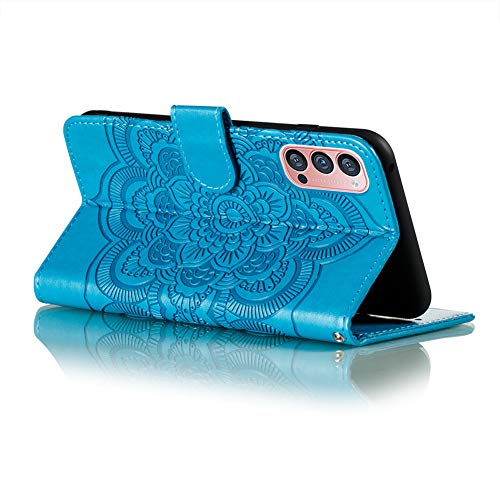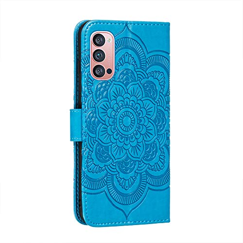 IMEIKONST Case per Oppo Reno 4 PRO 5G Custodia Embossed Premium Cover a Libro in Pelle PU Flip Portafoglio Protettiva Magnetic Stand Caso per Oppo Reno 4 PRO 5G Mandala Blue LD
