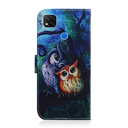 IMEIKONST Case per Xiaomi Redmi 9C, Moda Cool Painted Custodia a Libro in Pelle PU Flip Card Holder Portafoglio Magnetic Protective Shockproof Stand Caso per Xiaomi Redmi 9C Oil Painteding Owl TXZH