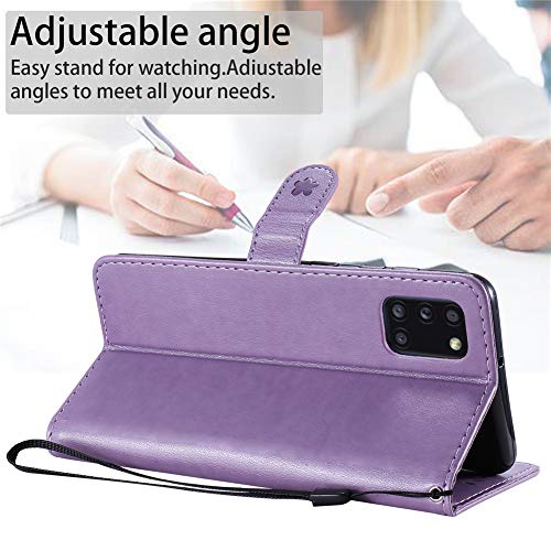 IMEIKONST Compatibile con Galaxy A31 Custodia a Libro in Premium Pelle PU 3D Goffratura Design Flip Portafoglio Magnetic Stand Protettiva Caso per Samsung Galaxy A31 Cat Purple KT