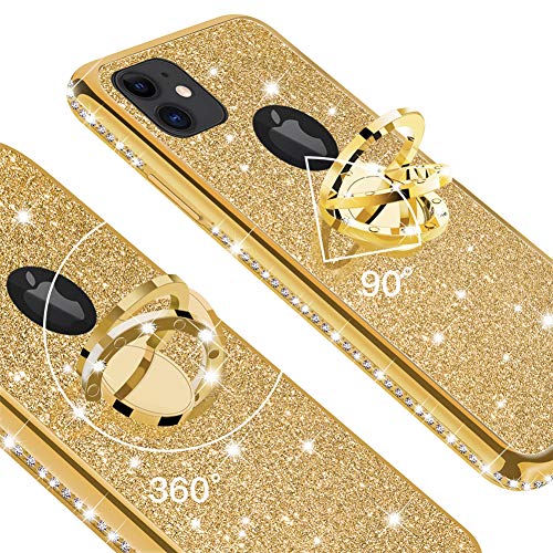 IMEIKONST Compatibile con iPhone 13 Pro 6,1 pollici Glitter Case, Sparkly Bling Cover Anello Rotante Silicone Morbido TPU Custodia Protettiva Sottile per iPhone 13 Pro