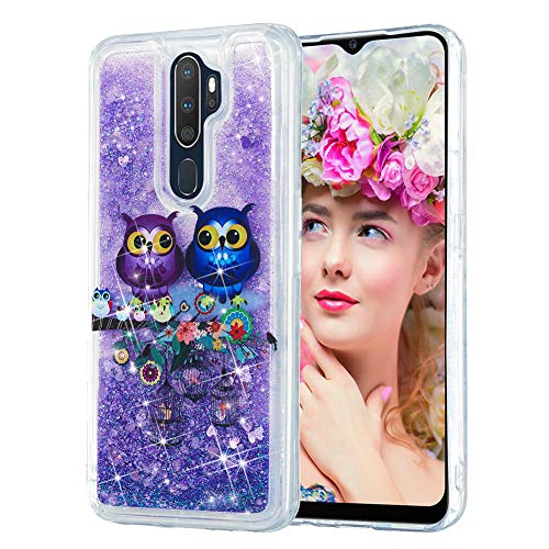 IMEIKONST Compatibile con Oppo A9 2020 Liquido Custodia Glitter Brillante Floating Sabbie Mobili Trasparente TPU Protettivo Custodia per Oppo A5 2020 Bling Couple Owls XY