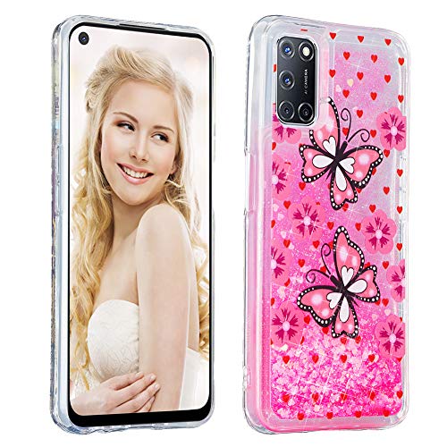 IMEIKONST Compatibile con OPPO A52 Liquido Custodia, Brillante Floating Sabbie Mobili Trasparente TPU Custodia Compatibile con OPPO A52 / A72 / A92 Bling Pink Butterfly XY