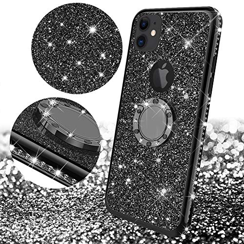 IMEIKONST Cover compatibile con iPhone 13 Pro Max 6.7 Pollice Brillante Glitter Cover Rotazione Anello Cavalletto Silicone TPU Morbido Protector Custodia per iPhone 13 Pro Max. Bling Black KDL