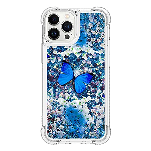 IMEIKONST Custodia Compatibile con iPhone 14 Pro Max, Brillante Liquido Glitter Trasparente Sabbie Mobili Silicone TPU Bumper Antiurto Protettivo Cover per iPhone 14 Pro Max. Bling Blue Butterfly YB